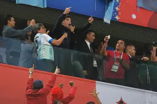 O antigo craque argentino esteve em São Petersburgo para ver o Nigéria-Argentina, no estádio, onde as imagens televisivas o captaram, várias vezes, a gesticular, a saltar da cadeira e a reagir fervorosamente aos acontecimentos. A imprensa argentina escreve que, no final do jogo, Diego Armando Maradona sofreu "um pico de tensão" e foi examinado e visto por paramédicos, ainda dentro do recinto